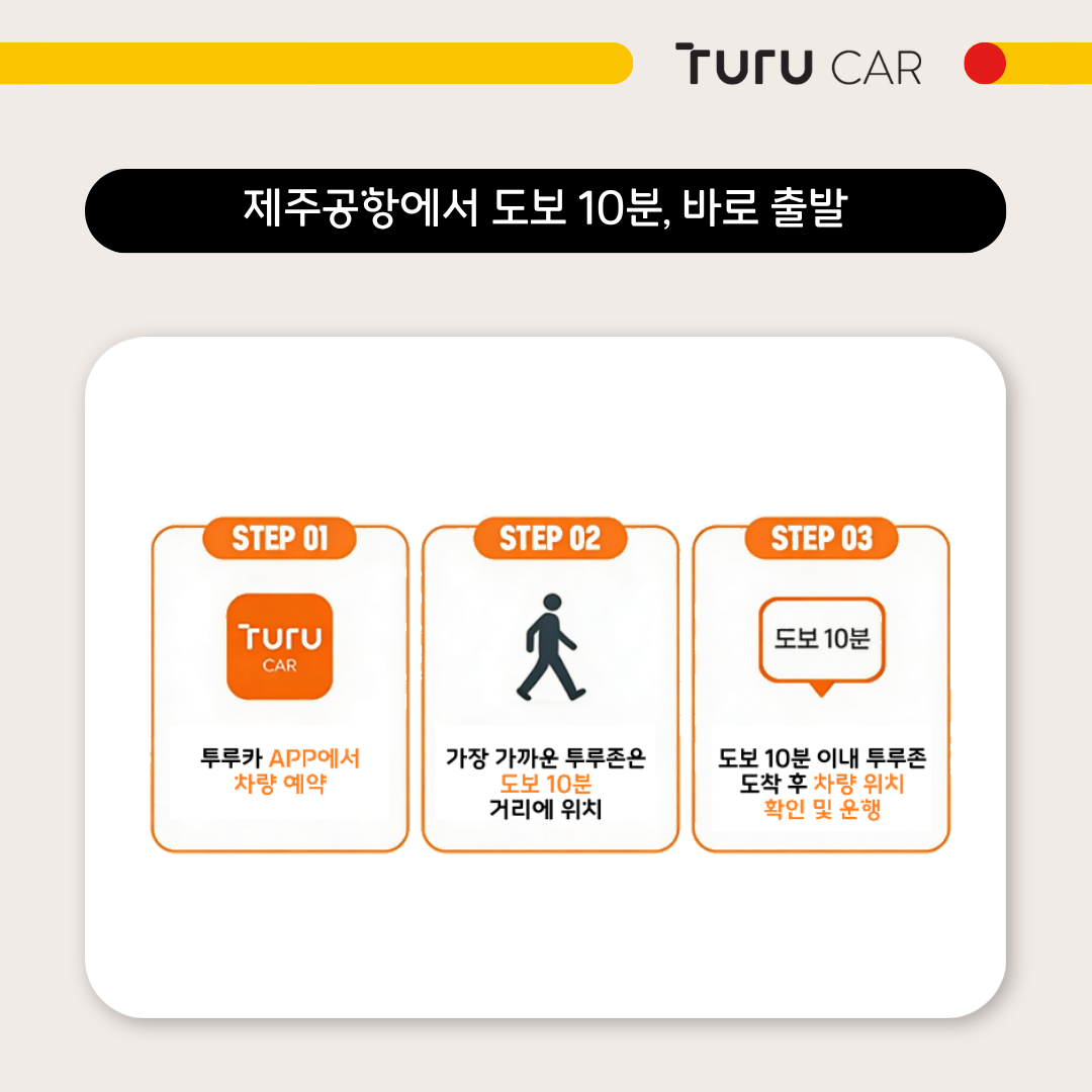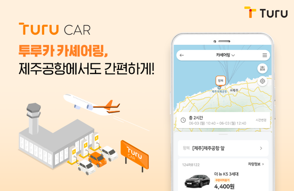 투루카 카셰어링 제주도 이용, 공항에서 도보 10분이면 충분합니다